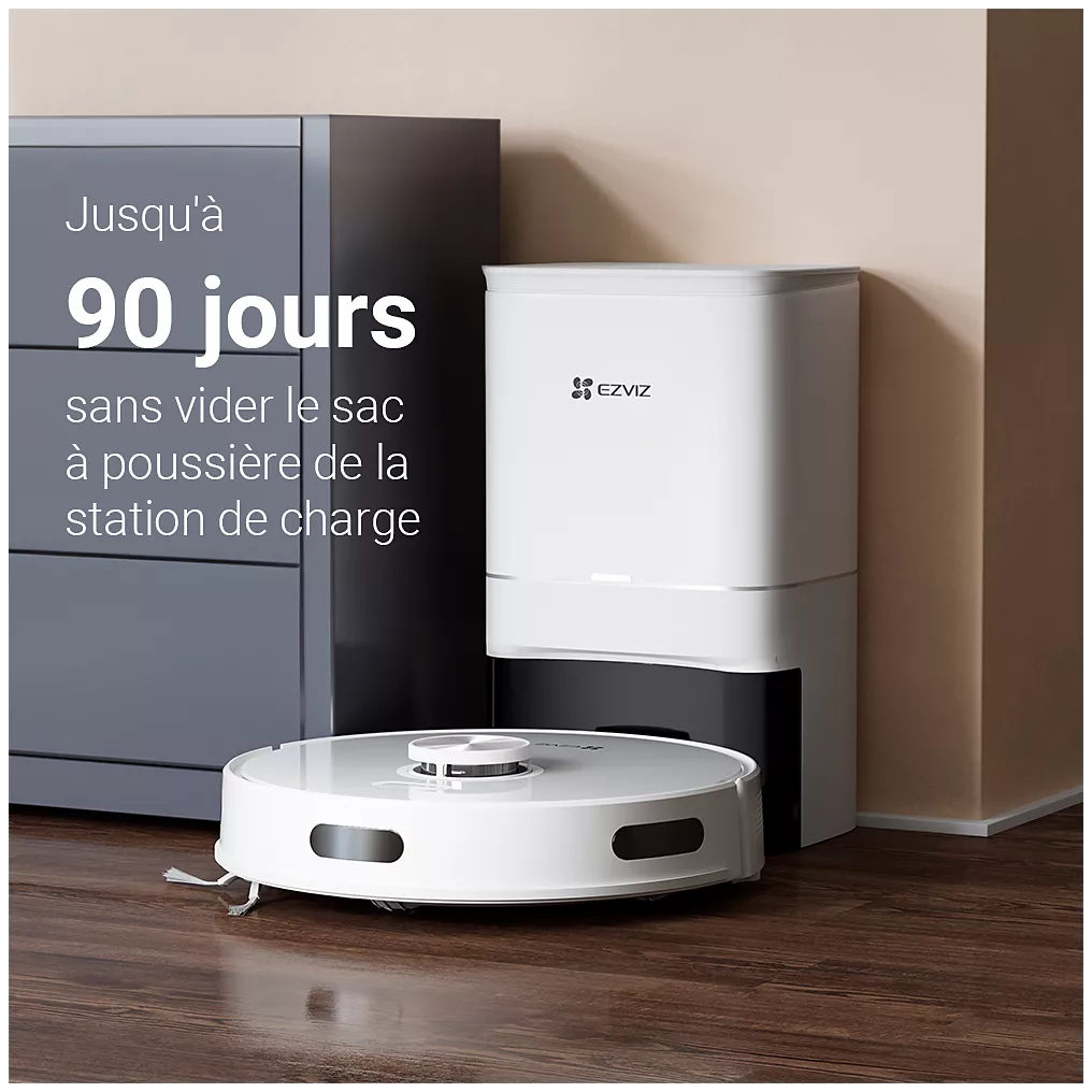 Évitez de vider le sac à poussière de 4 L de votre futur aspirateur robot EZVIZ RE5 Plus trop fréquemment ! En plus de réduire les fuites, son système ingénieux vous permettra de limiter les interventions manuelles en le remplaçant simplement tous les 3 mois : parfait pour maintenir la propreté de votre domicile sans effort constant.