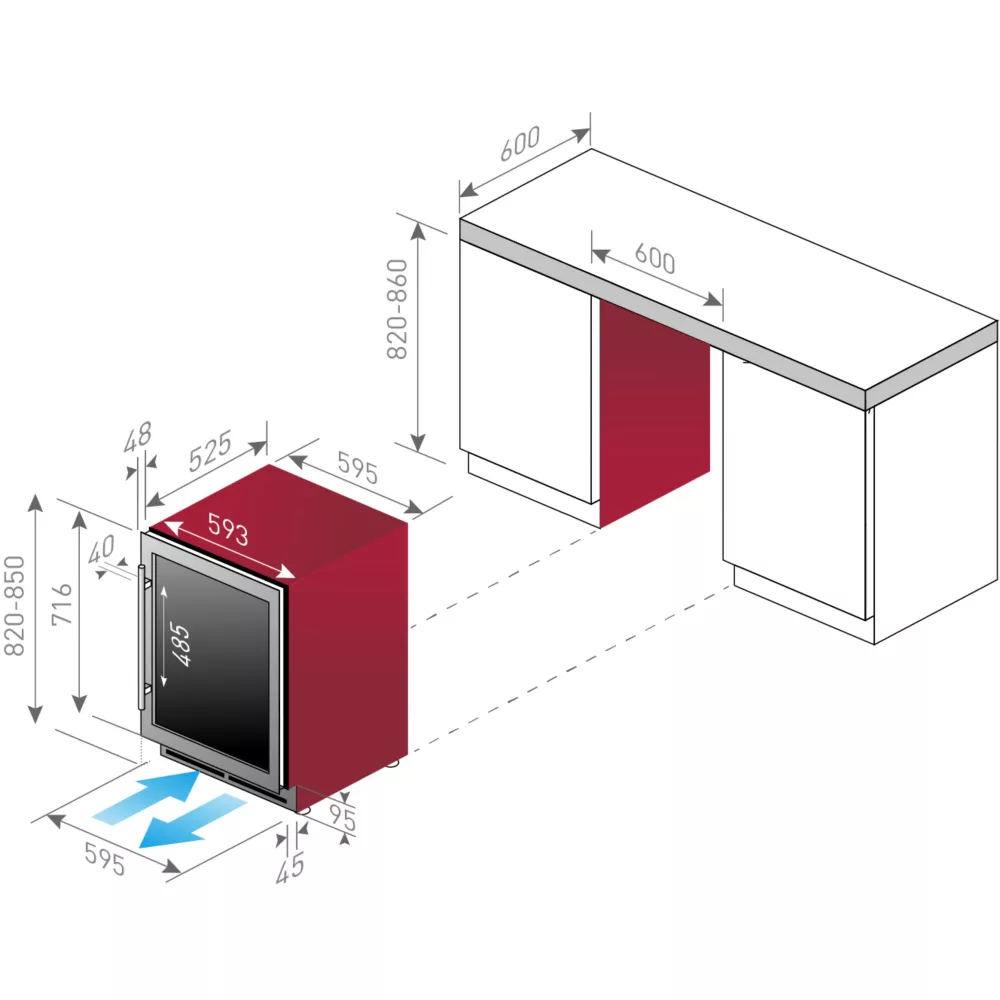 - Bon à savoir : avec sa largeur inférieure à 60cm, la cave peut être installée dans une niche prévue pour les fours.