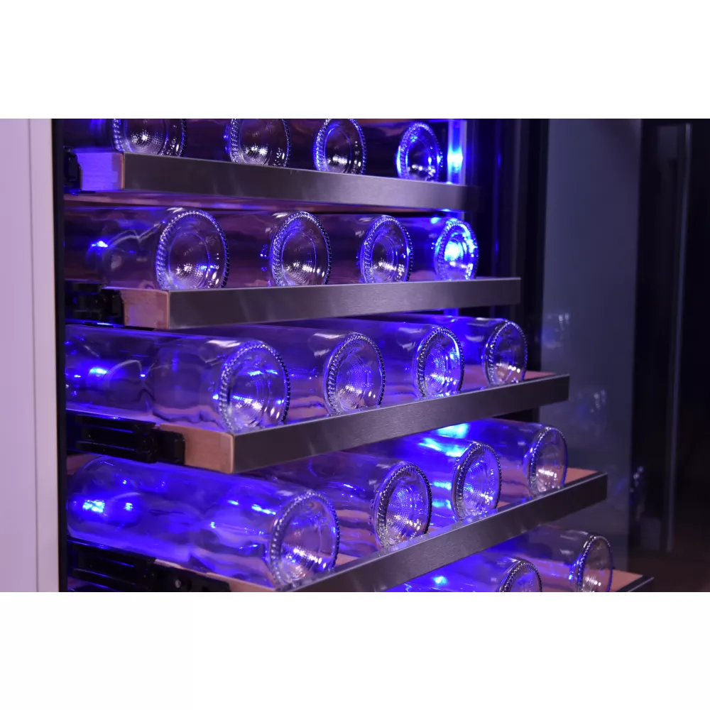 - Type d’appareil : cave à vin polyvalente, elle combine plusieurs plages de températures en fonction des zones, soit pour vieillir le vin soit pour le mettre à la température de service. Idéale pour les œnophiles et collectionneurs de grands crus.