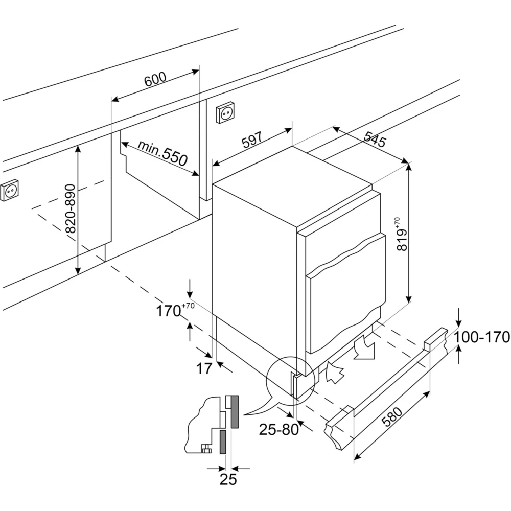 - Dimensions d’encastrement LxHxP : 60 x 82 x 55 cm