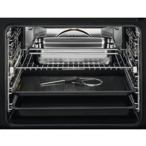 - Rails télescopiques : ils permettent d’accéder à vos plats en les faisant coulisser en dehors de l’enceinte de cuisson en évitant les risques de basculement. Vous pourrez arroser confortablement votre rôti ou retourner facilement vos plats sans risque de brûlure.