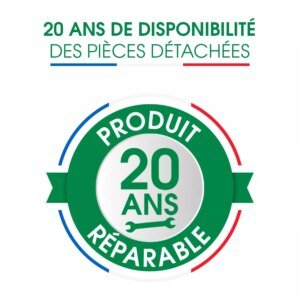 - Disponibilité des pièces détachées (données fournisseur) : Pendant 20 ans, à compter de la date d’achat