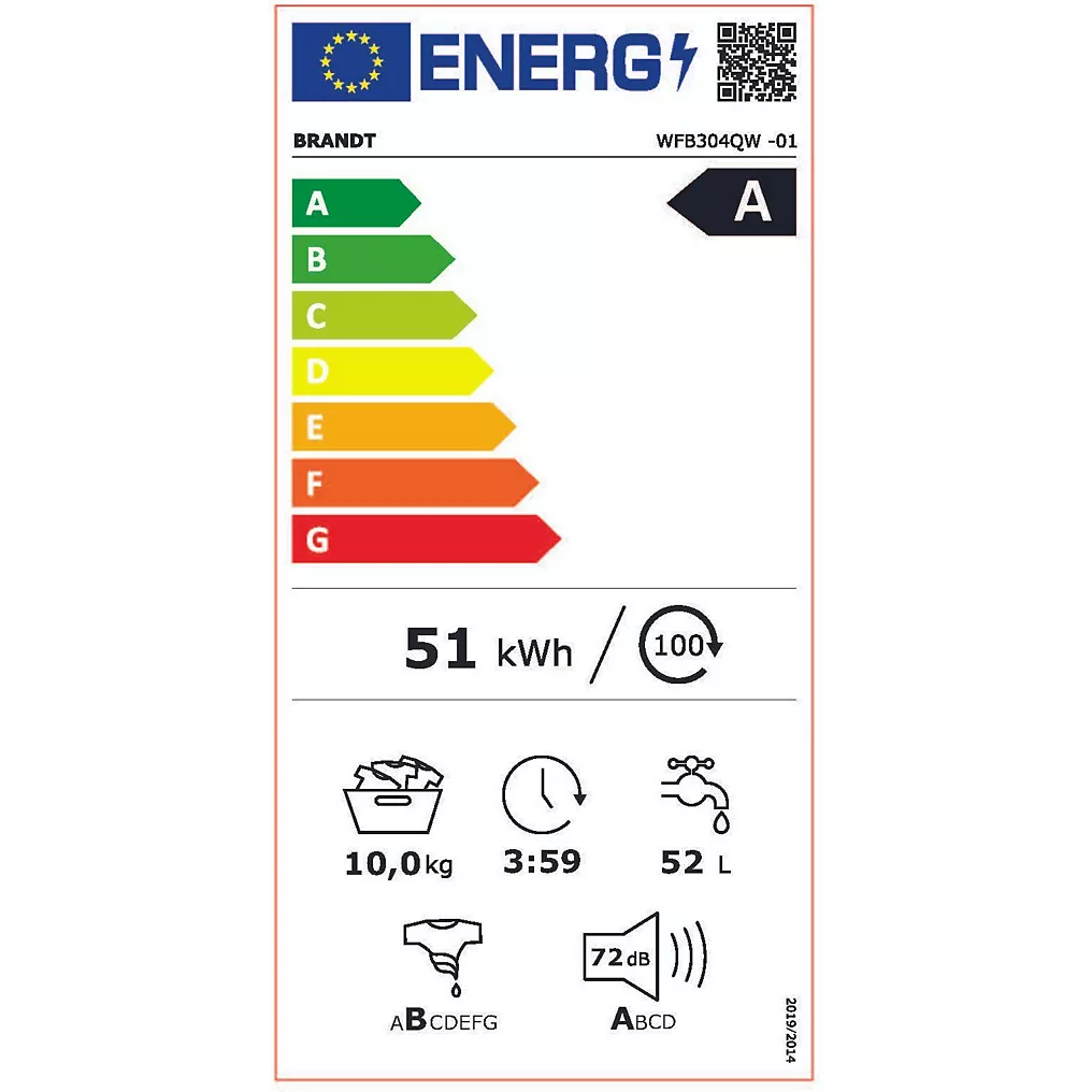 Découvrez le lave-linge hublot Brandt WFB304QW, un appareil performant et économe conçu pour offrir un lavage efficace, des programmes adaptés à tous les textiles et un confort d’utilisation au quotidien.