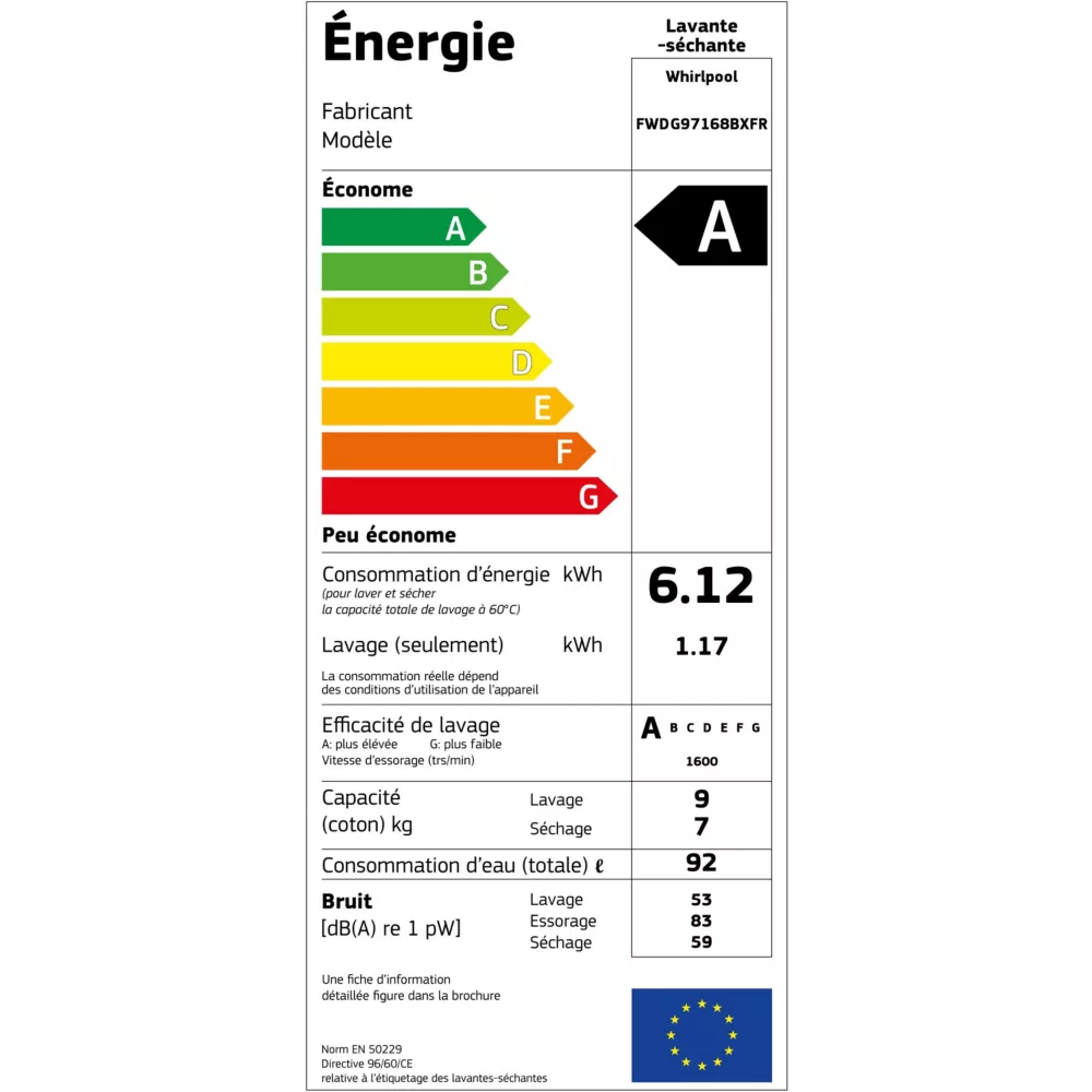 Découvrez le lave-linge séchant hublot Whirlpool FWDG97168BXFR, alliant grande capacité, efficacité énergétique et technologies avancées pour un lavage et un séchage rapides, performants et adaptés à tous vos textiles.