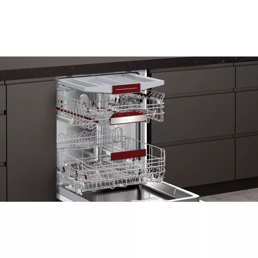Découvrez le lave-vaisselle encastrable NEFF S175ECX12E avec porte à glissières, alliant efficacité, silence et flexibilité pour un nettoyage impeccable de votre vaisselle tout en s’intégrant parfaitement dans votre cuisine moderne.