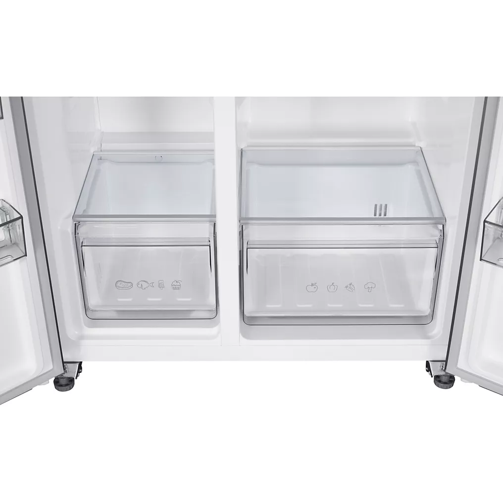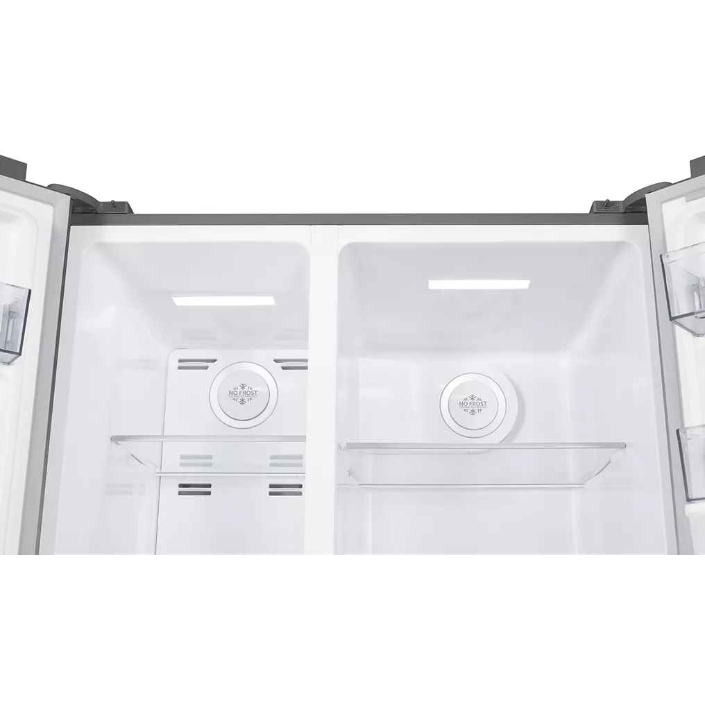 Ce réfrigérateur américain utilise un système de froid ventilé No Frost, garantissant une répartition homogène du froid et évitant la formation de givre. Son thermostat électronique permet un réglage précis de la température, assurant une conservation optimale des aliments. Doté d’un moteur inverter, il est silencieux avec un niveau sonore de 39 dB et classé en énergie D, avec une consommation annuelle de 250 kWh. Les fonctionnalités pratiques incluent un distributeur d’eau, un mode vacances, et des alarmes de porte ouverte et de remontée en température, offrant confort et sécurité au quotidien.