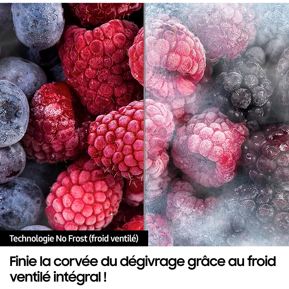 - Froid du réfrigérateur : le froid ventilé permet une répartition du froid de manière homogène et un rangement libre, sans contrainte, des aliments dans le réfrigérateur