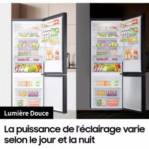Si vous cherchez un combiné avec une grande capacité, le réfrigérateur Samsung COMBINÉ RB50DG602EB1 est fait pour vous. Sa technologie Space Max™ et ses 508 L en font un atout de taille dans votre cuisine. Avec son froid ventilé Multi-Flow et son option Lumière douce programmable, vous ne pourrez plus vous en passer. De plus, avec son mode AI Energy via SmartThings™, il vous fera économiser de l’énergie.